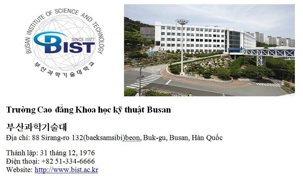 -Tên tiếng Anh: Busan Institue of Science and Technology (BIST)Tên --tiếng Việt: trường đại học khoa học và công nghệ Busan